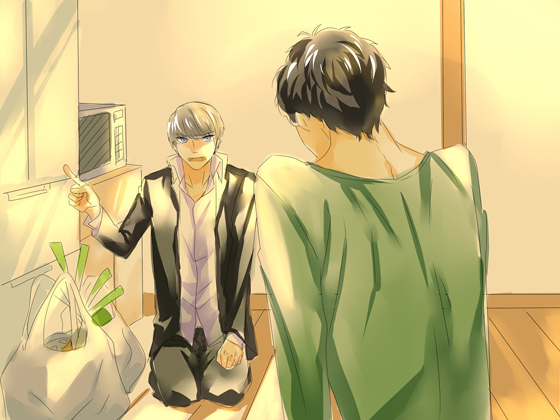 ちょっとニヤけつつ飯をつくる。それを足立に目撃されて、「変な顔ー」