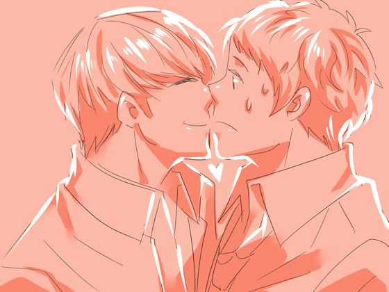 しかし、だいぶ良くなったので早速らくがき。 48は次二つ上げるんでもうちょいかかりそうっす。 ていうか、最後はいっきに上げないとテンポ悪いような気がして・・・うーむ。 拍手&コメントありがとうございます!!! ぱちぱちしていただけると本当嬉しいっす。やる気がもりっと湧いてきます。 本当にありがとうございました!! さて今日の小ネタは軽くちゅーしてます。そしてものすごくばかっぷるな内容です・・・。 もしよければつづきよりご覧ください。 |