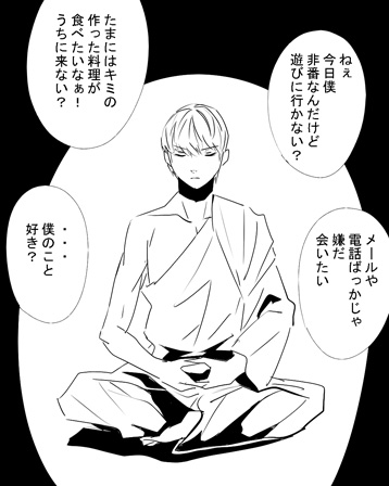 会社で知りましたよ。ススキ抱えてる人を社内で見かけて何事かと思ったら 今日は十五夜だって教えてもらいました。 それで仕事帰りにチャリ漕ぎながら空見上げてたら、事故りそうになりましたね。 でも、お月さん綺麗でしたなぁ。 てなわけで、十五夜でラクガキ小ネタっす。 獣耳生えとるんでつづきにそっと置いときます。もしよろしければ見てやってください。 拍手やコメントありがとうございます! 修行僧主はやっぱり足立という煩悩には勝てないと思います。多分 コメントありがとうございました!PCともども頑張ります! 拍手のみの方もありがとうございましたーーーーー!!!! そういえば参加証きました。 漫画できたらサンプルと一緒に載せるであります。 では作業に戻ります。 PR |