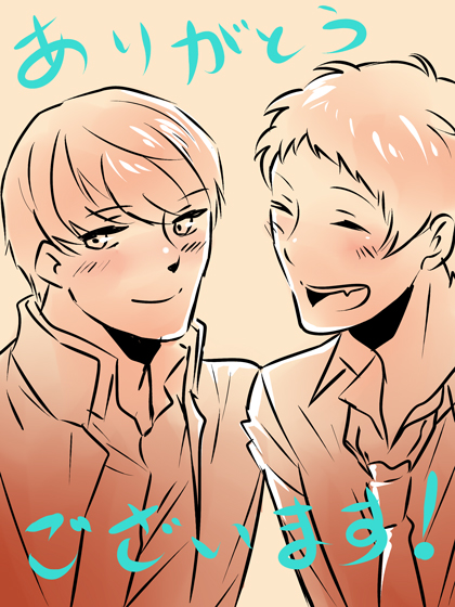 48終わってほっとしてましたー。んで、久しぶりに拍手見たら驚きました。 本当にパチパチありがとうございました!!!びっくりしたっす。サイト開設以来 あんなにパチパチしていただいたのは初めてです。 コメントもいただいてしまって、本当に感謝感激です!! 返信不要とのことでしたが、お返事させてくださいませ。 続きにて返信させていただきましたので、お心当たりのある方は見ていただけると ありがたいです。 PR |